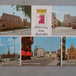 Malmö Hälsning från Flerbildskort med bl a Spårvagn
