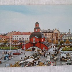 Lidköping Stora torget med Gamla Rådhuset med torghandel m m