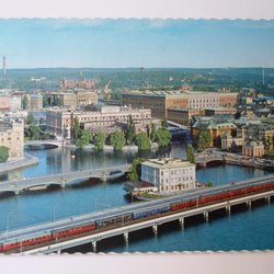 Stockholm Vy från Stadshustornet bl a Fjärrtåg