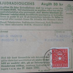 Radiolicens nr 6 30 kr Klipp stämplad Hjorthagen 18/3 XX
