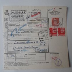 Adresskort Köpenhamn 1961 Till Belgien Div stämplar Etiketter m m