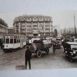 Stockholm Tegelbacken 1925 Spårvagn Bilar m m Mycket trevligt kort NYTRYCK