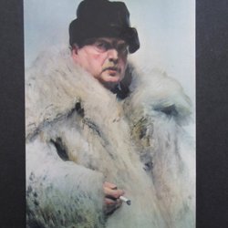 Vykort Anders Zorn Självporträtt i vargskinnspäls 1915
