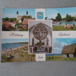 Gotland Hälsning från Flerbildskort med bl a badliv m m Pressbyrån