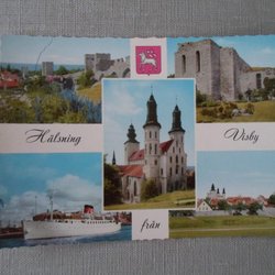 Visby Hälsning från Flerbildskort med bla Gotlandsfärja Pressbyrån