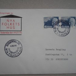 Vinjett brev Södertälje 4/9 70 Invigningen av Nya Folkets Hus