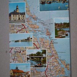Östhammar Norrtälje Kartkort med små bilder trevligt kort minimalt hundöra