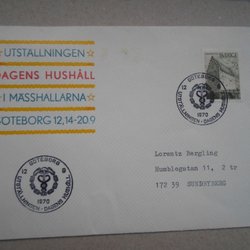 Vinjett brev Göteborg 12/9 70 Dagens Hushåll i Mässhallarna Första dag