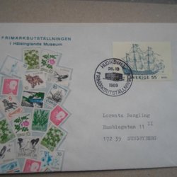 Vinjett brev Hudiksvall 26/10 69 Frimärksutställningen i Hälsinglands Museum
