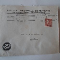 Brev Östersund 19/5 37 Reklambrev J O Westvall Herrkonfektion