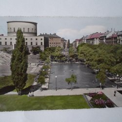 Stockholm Stadsbiblioteket och Plaskdammen Handkolorerat Nordisk Konst