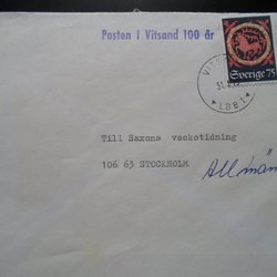 Brev Vitsand LBB 1 31/1 75 Posten Vitsand 100 år Torsby kommun