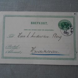 Brefkort Kungelf 16/1 1897 till Hudiksvall avsändare Göteborgs Kexfabrik ab