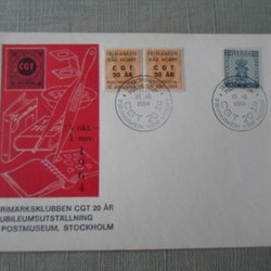 Brev Frimärksklubben CGT vinjett och brevmärken Stockholm Postmuseum 15/10 64