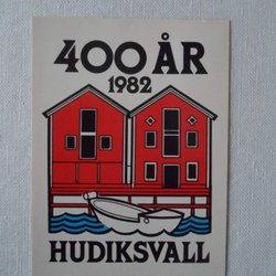 Hudiksvall 400 år 1982 tecknat kort med motiv stämpel 6/2 1982