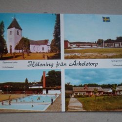 Arkelstorp Hälsning från Flerbildskort med bl a simbassäng Kristianstads kommun