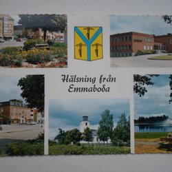 Emmaboda Hälsning från Flerbildskort med stadsvapnet