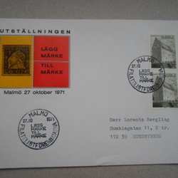 Vinjett brev Malmö 27/10 71 Filatelistföreningen Lägg märke till Märke