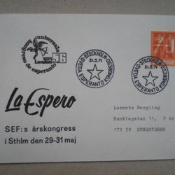 Vinjett brev Stockholm 31/5 71 Esperanto SEF:s årskongress