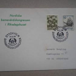 Vinjett brev Stockholm 10/6 69 Nordiska Barnavårdskongressen i Riksdagshuset