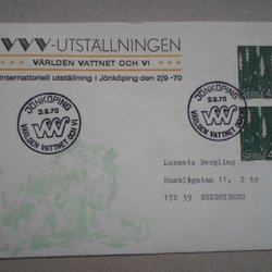 Vinjett brev Jönköping 2/9 70 Världen Vatten och Vi utställningen