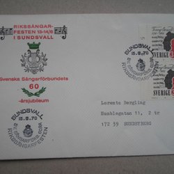 Vinjett brev Sundsvall 13/6 70 Rikssångarfesten Svenska Sångarförbundets 60 år