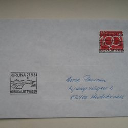 Kiruna 27/9 84 Nordkalottvägen LYX stämplad på Brev