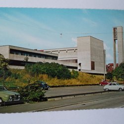 Göteborg Högsbo Kyrka trevligt kort med flera SAAB bilar
