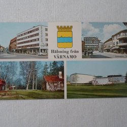 Värnamo Flerbildskort med stadsvapen Hälsning från Udda storlek