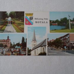 Motala Flerbildskort med stadsvapen Hälsning från Udda storlek