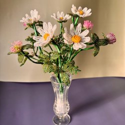 Handgjorda pärlblommor – Prästkragar i glaspärlor – Exklusiv & unik dekoration
