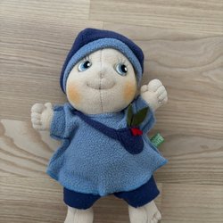 Rubens Barn docka med blå kläder och mössa