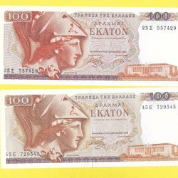 2 st 100 Drachmer Grekland p#200a, 200b