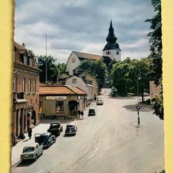 Kort Hudiksvall Kyrkan bilar VW folkvagn prislapp -35 oskrivet
