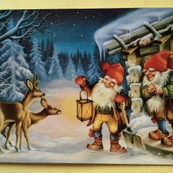Julkort Tomtar rådjur LC Lars Carlsson
