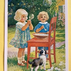 Kort Barn hund såpbubblor JENNY NYSTRÖM Postens regionkontor Malmö oskrivet