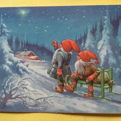 Julkort Tomtar LC Lars Carlsson stämpel HELSINGFORS