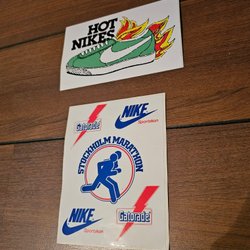 Klistermärken Nike och Stockholms maratonreklam.