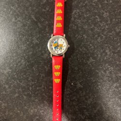 Bamseklocka barnklocka med gravyr och rött armband