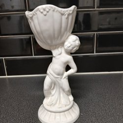 Vit porslinsfigur med skål
