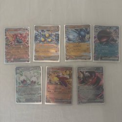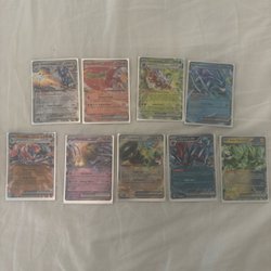 Här säljer jag och min bror av Pokémonkort från olika generationer (1995-2024). Korten är i varierande skick eftersom vissa använts på skolgården när vi var små, men vi har också mängder av riktigt fina ograderade kort (graderade kort och andra samlarobjekt kommer i framtiden).