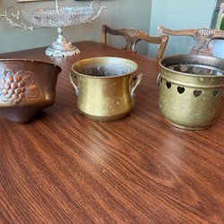 Krukor i mässing och koppar