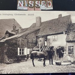 Hälsingborg man med häst gårdsinteriör