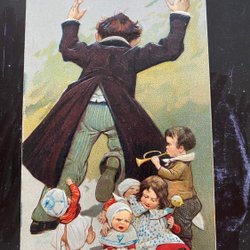 Barn med snögubbe Handkolorerat