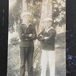 Äkta fotografivykort 2 män från Kustartilleriet
