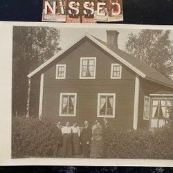 Äkta fotografivykort Familj framför hus