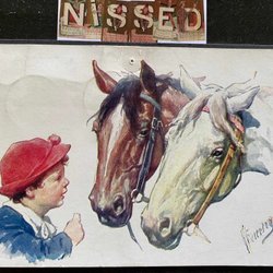 Pojke med 2 hästar signerat