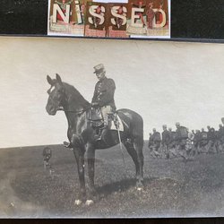 Äkta fotografivykort . militär till häst