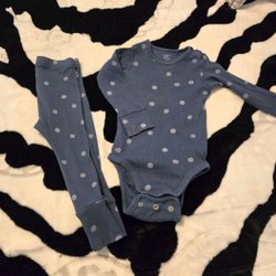 Lindex Set - Body och Leggings - Storlek 80 - Blå Prickigt