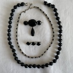 Vintage Smyckesset - Halsband och Broscher, sorgesmycken.